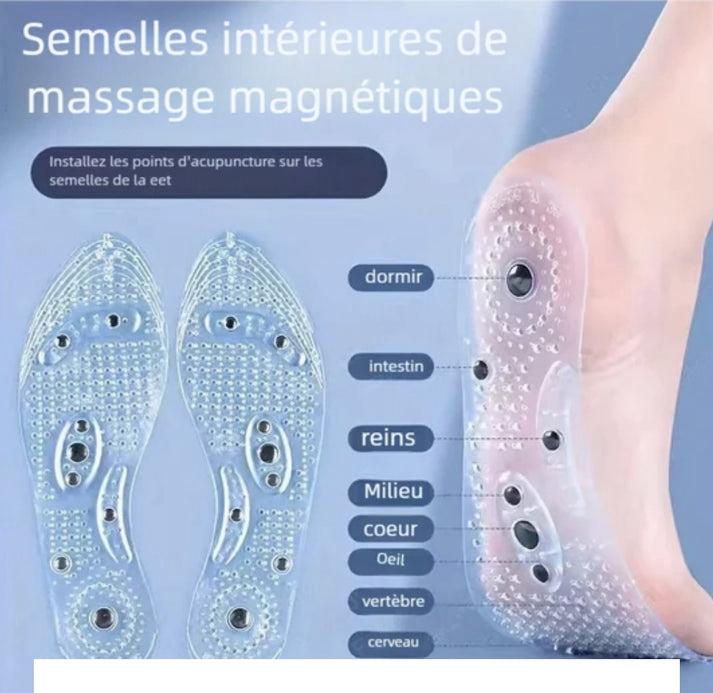 Si vous avez en assez de rentrer chaque soir avec les pieds en feu, le dos douloureux et une fatigue constante, sachez que ces douleurs plantaires, cette mauvaise circulation et ces jambes lourdes ne sont pas une fatalité. Grâce aux semelles magnétiques d'acupression, vous pouvez enfin dire adieu à ces problèmes et transformer chacun de vos pas en un véritable soin naturel.